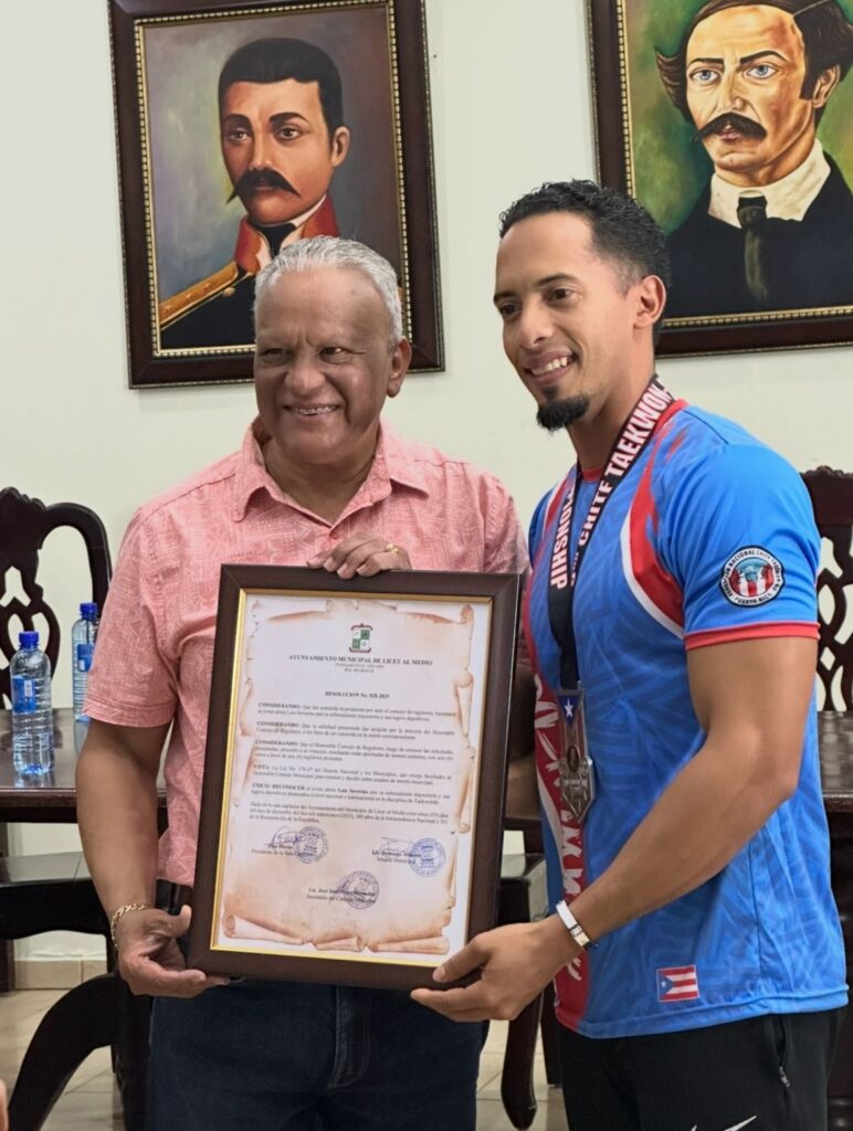 Licey al Medio, Santiago. – En un acto cargado de orgullo y emotividad, el Ayuntamiento de Licey al Medio entregó un reconocimiento especial al destacado atleta Luis Enrique Severino Hernández, subcampeón mundial de taekwondo, quien fue galardonado como Atleta del Año mediante la Resolución No. 028-2025, aprobada por el Concejo de Regidores en reconocimiento a su trayectoria deportiva y sus aportes a la juventud del municipio.